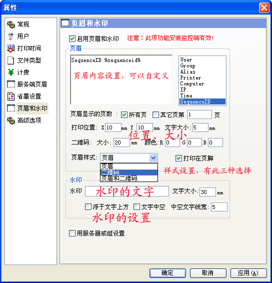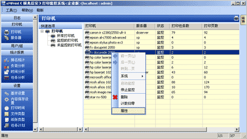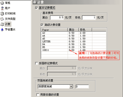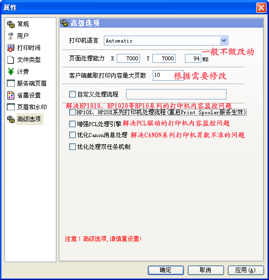 针对某些特殊的打印机型,可以在高级选项中做设置,实现打印数量及打印内容的准确监控。