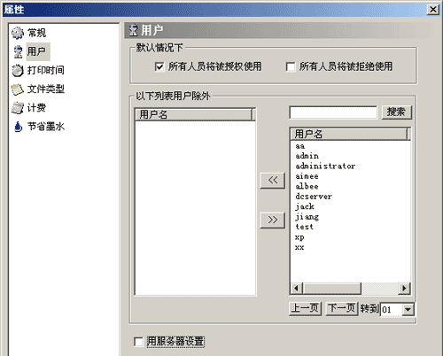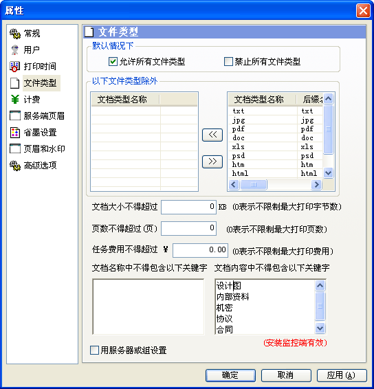 可以对打印文档的类型进行限制,默认为不限制。