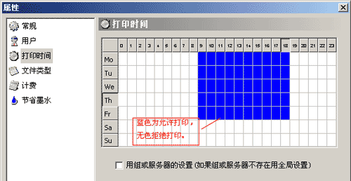 未选中状态下,可对打印机的时间属性进行单独的设置,覆盖服务器的时间属性设置。